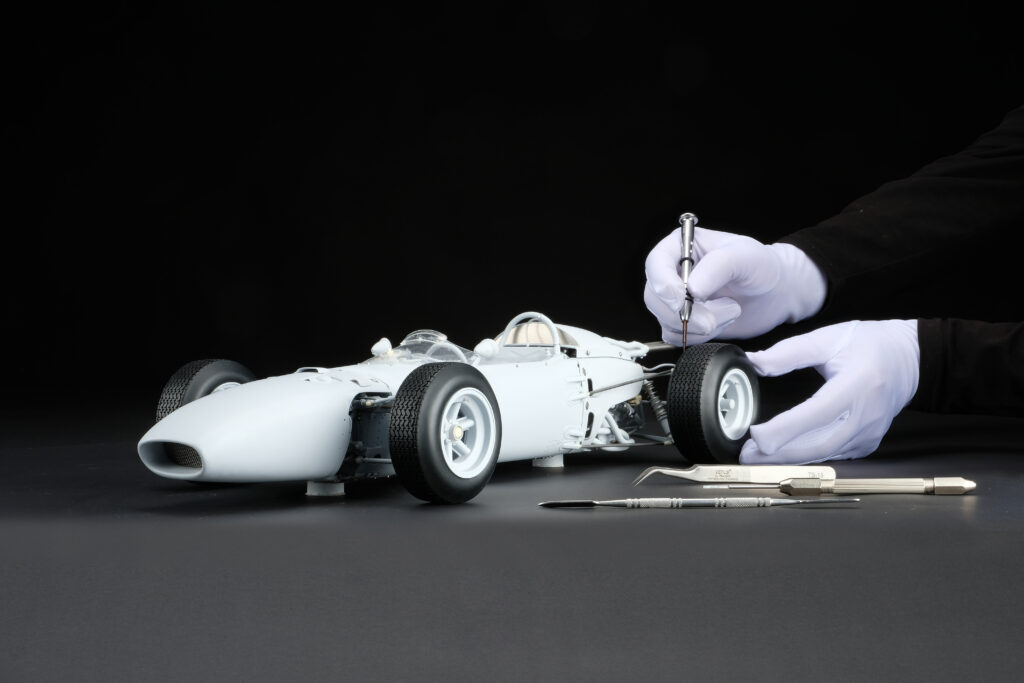 Founded in 1985, Amalgam Collection sets the standard for world-class model making, using only the finest materials. For this project, their team traveled to the Honda Collection Hall in Motegi, Japan, to digitally scan the original RA272 — ensuring absolute accuracy. More than 4,500 hours went into development, and each individual model requires 450 hours to hand-build.