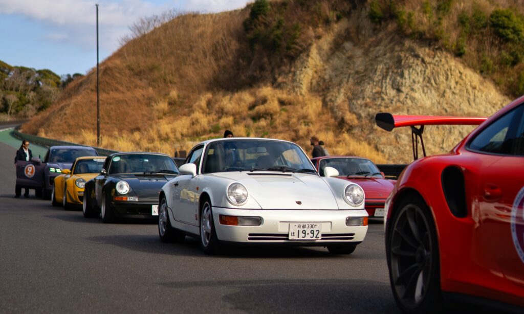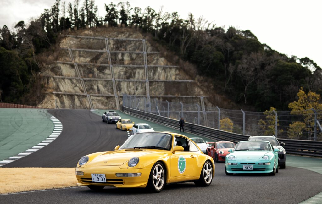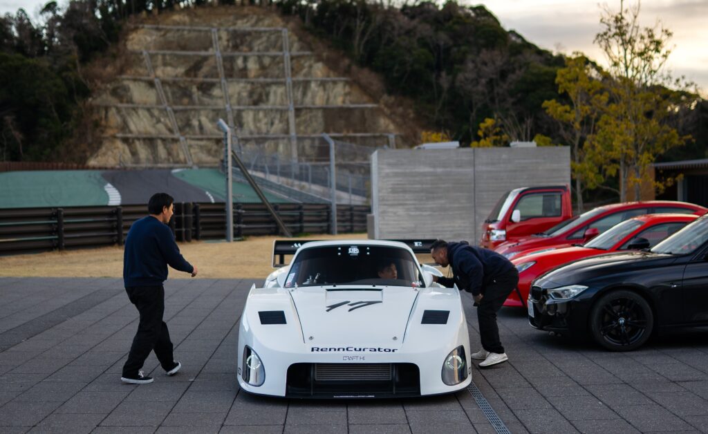 We were gathered at the starting line of the track for a parade lap. I was genuinely surprised to see the 962s there; they had been transported on trucks all the way from Tokyo, fresh from Luft Tokyo the previous day.