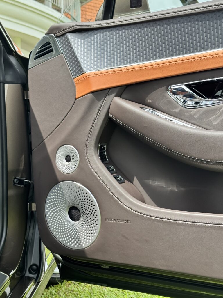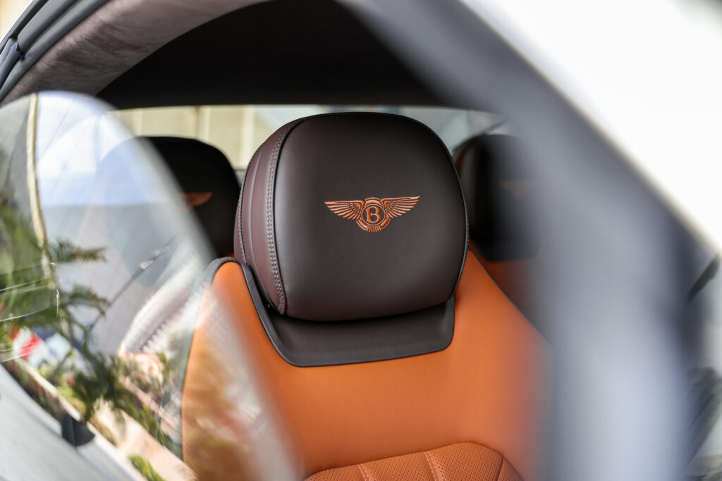 Rolling stock consists of beautiful 21 inch wheels, staggered in width, featuring 9-inch wide fronts and 10.5 inch wide rears with 265/40R21 and 305/35R21 Pirelli P-Zero Tires. Larger 22″ wheels and tires are available. But despite the massive wheels and low-profile tire sizes, the big, bad Bentley rides comfortably.
