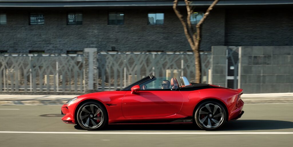 The front has shades of Aston Martin, Jaguar and McLaren, the rear a hint of Dodge Viper. The tail lights are a nod to the Union Jack though it is the Cyberster’s one disappointing design flaw.