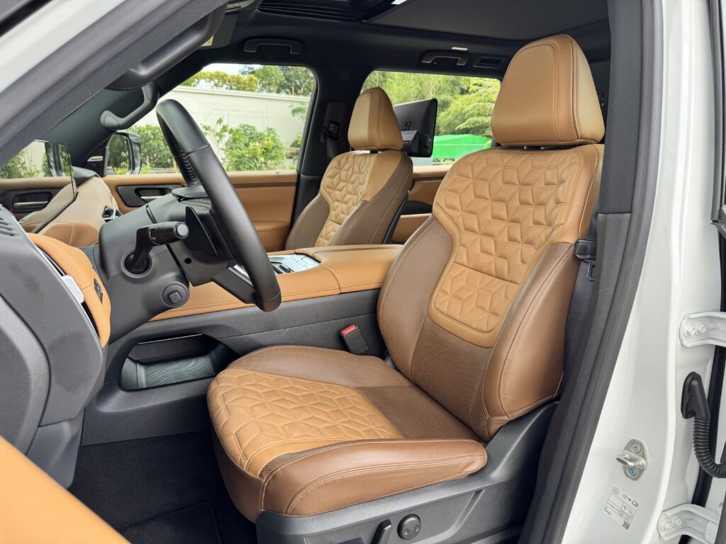 Inside, the interior is opulent. That’s the only way to describe it. The perforated two-tone light and dark tan seats with diamond quilted stitching,