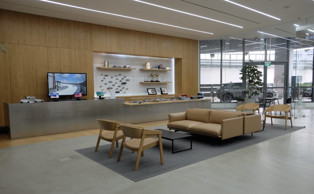 Mr. Kim humorously said that even robots and machines need work-life balance. Afterwards, we were led to a unique handover zone for new vehicle owners beside the lobby where they can drive their cars home.