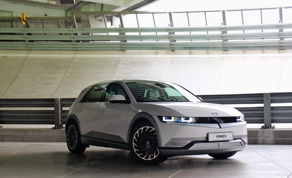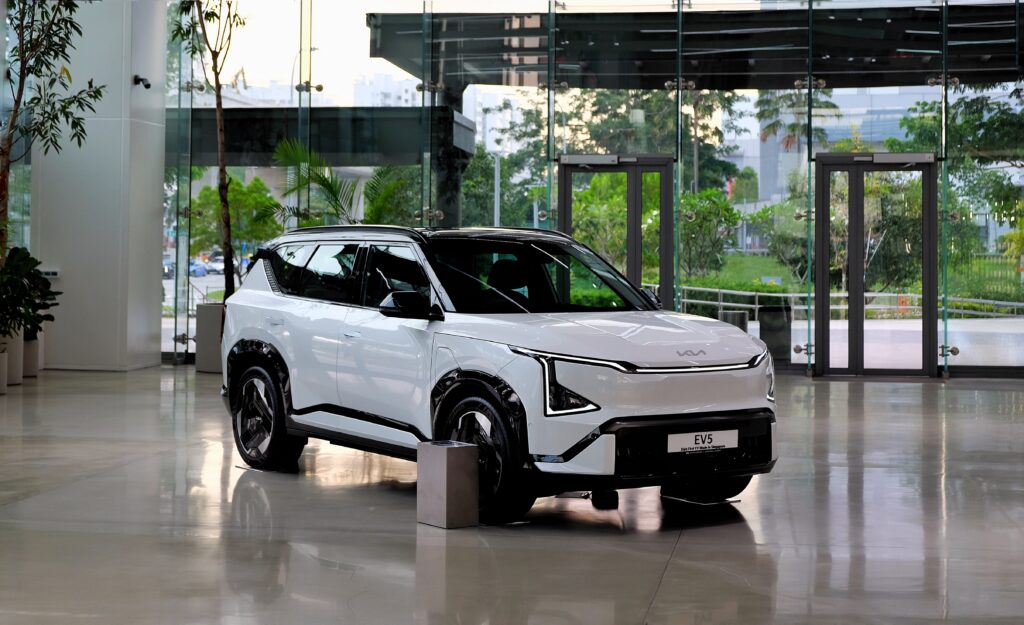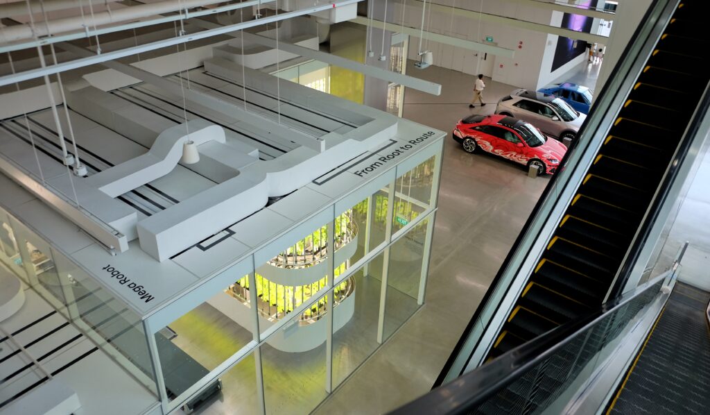 At the far end, across the tall escalators, a lone KIA EV5, another vehicle assembled at the HMGICS’ Jurong Facility is displayed.